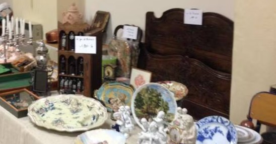 Stands de Brocante, livres, pâtisseries, buvette, légumes…..