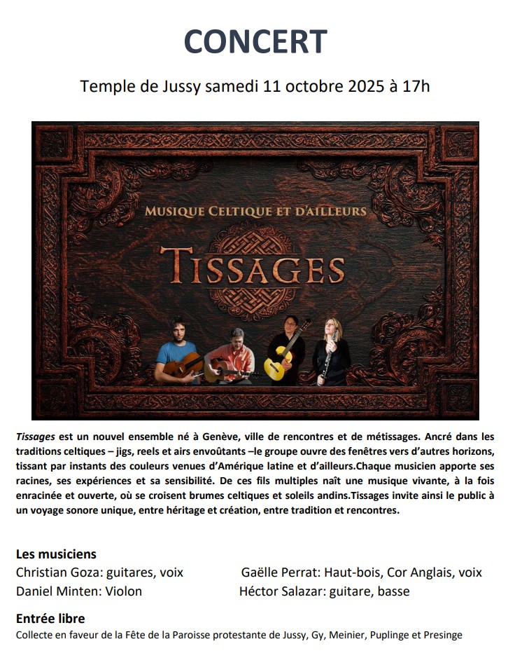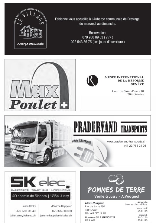 Chaque année, le deuxième weekend d’octobre se déroule notre fête de paroisse dans le village de Jussy. Au temple et dans la salle des fêtes
